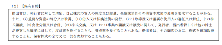 そして保有目的にはアクティビスト活動するよ的なことが書いてあります。